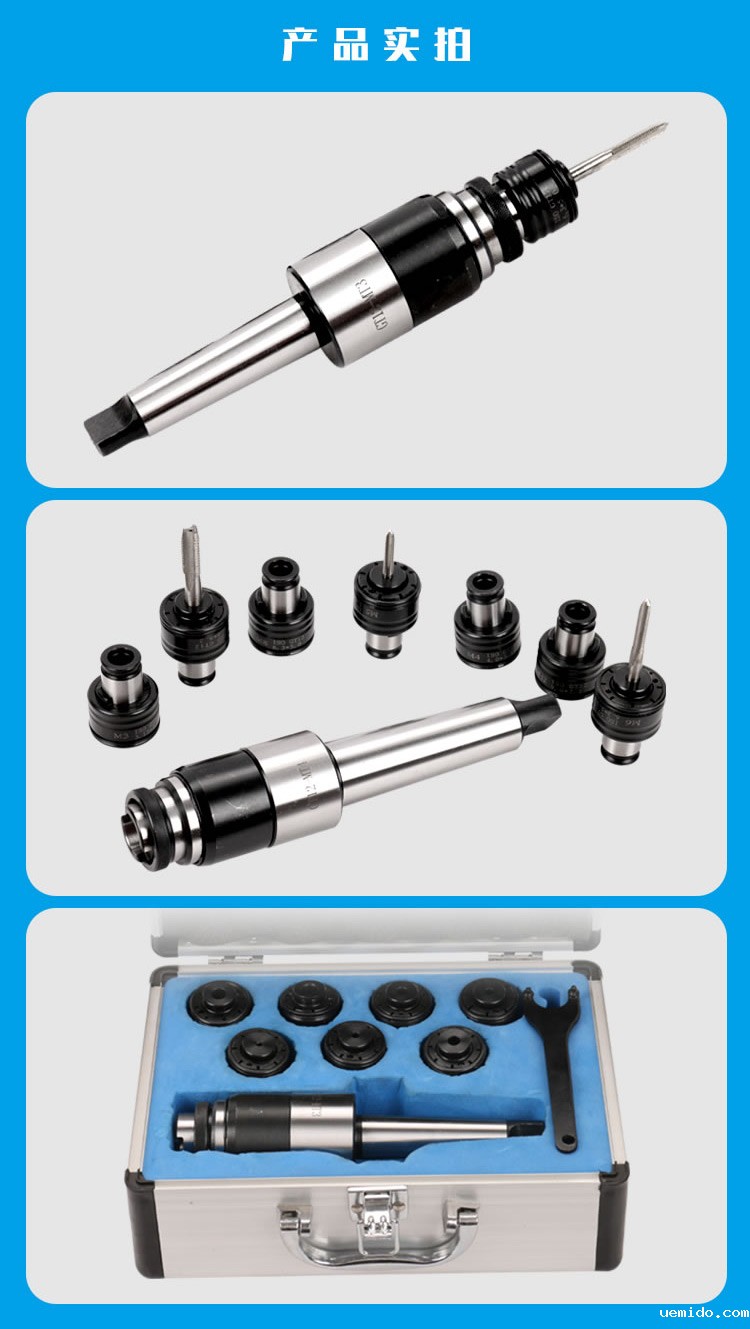 产品特性:具有扭矩过载保护可防止丝锥断裂。具有浮动、伸缩、快换等功能。适合在CNC加工中心、数控铣床等机床设备。