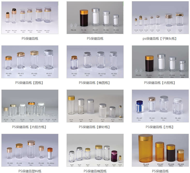 PS瓶透明度极高,表面光泽,容易印刷,广泛应用于食品、药品和保健品包装等。