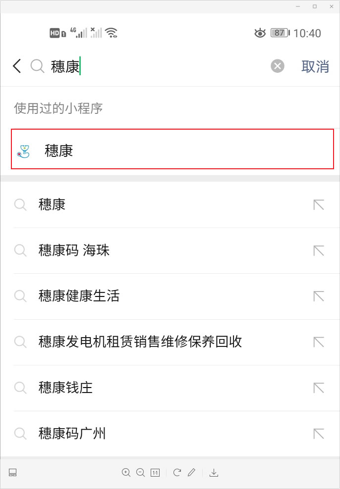方式②:在微信搜索栏输入「穗康」,点击进入“穗康”小程序。