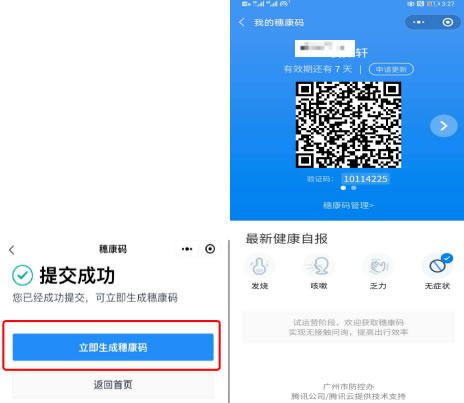 在疫情防控期间,“穗康码”是人员通行管理的出行凭证。穗康码有效期:7天,到期后可申请更新。