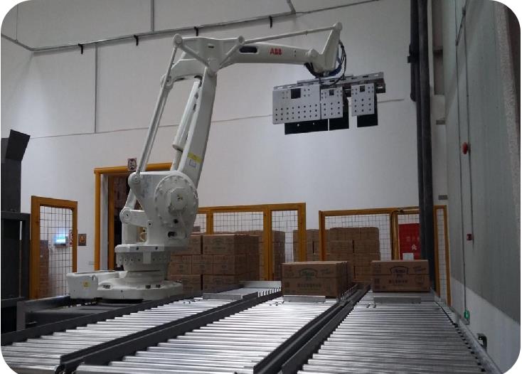 富尔菱自动化物流配备单轴及多轴机器人,完成生产内部物品整理、分拣、扫码、卸垛、搬运、码垛等功能。