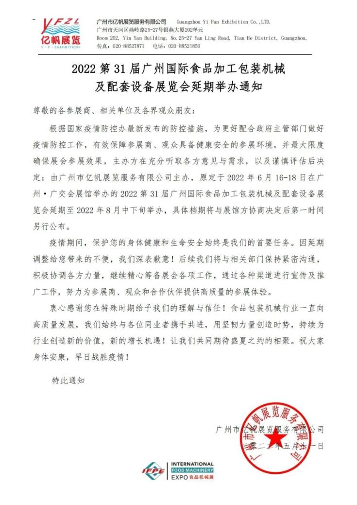 根据国家疫情防控办最新发布的防控措施,为更好配合政府主管部门做好疫情防控工作,有效保障参展商、观众具备健康安全的参展环境,并最大限度确保展会参展效果,主办方在充分听取各方意见与需求,以及谨慎评估后决定:由必威官方首页官网查询主办,原定于2022年6月16-18日在广州·广交会展馆举办的2022第31届必威官方首页官网电话查询号码延期至2022年8月中下旬举办,具体档期将与展馆方协商决定后第一时间另行公布。