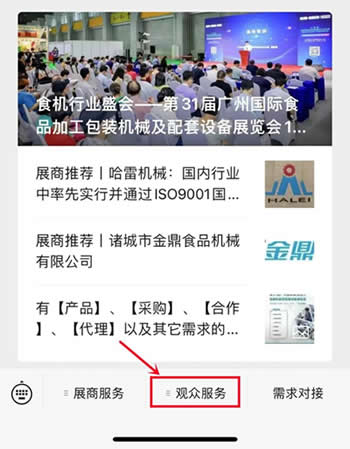 2、关注微信公众号“IFPE食机展”,点击菜单栏“观众服务”下的“参观报名”,按照步骤填写即可。