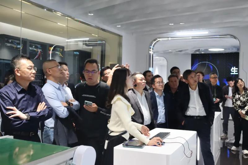 随后,百度飞桨廖启丰总工程师向参会会员介绍了百度飞桨基本概况及百度AI赋能食品企业和装备制造企业的案例。参会会员还在工作人员的带领下参观了展厅,体验“文心一言”、“文心一格”以及观摩体验百度飞桨在交通、制造业等领域的解决方案。