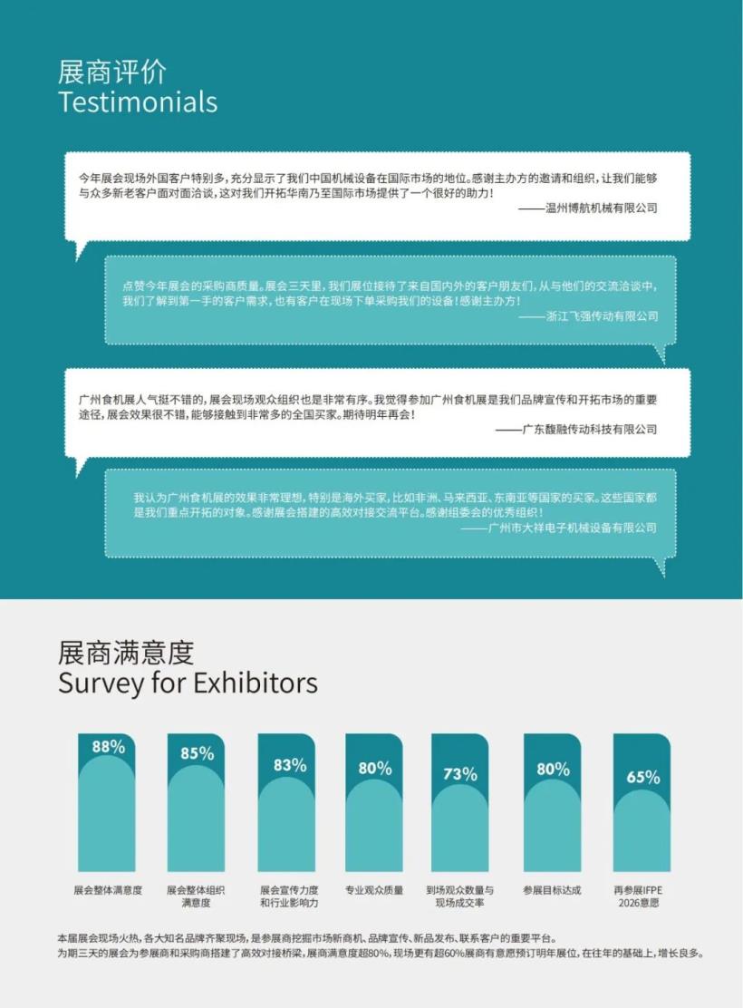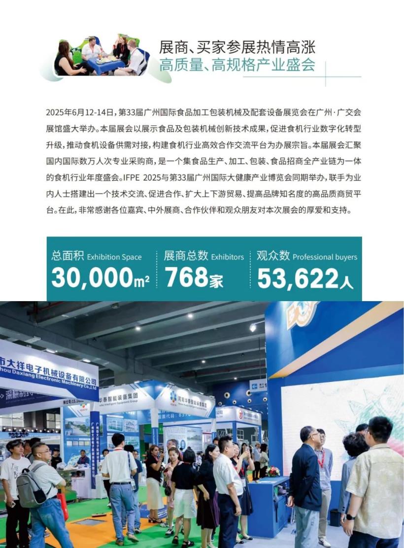 2025年6月12-14日,第33届必威官方首页官网电话查询号码在羊城广州盛大举办。本次展会汇聚必威官方网站手机下载机械、食品包装设备、食品饮料机械、包装材料、配套器材、包装印刷机械等众多细分板块的领军企业和品牌。IFPE 2025以展示食品及包装机械创新技术成果,促进食机行业数字化转型升级,加快产业链上下游供需对接为办展宗旨。展会精准邀约数万人次国内外专业采购商参展,为食机产业搭建了一个高效合作对接交流平台,获得了广大参展商和采购商的共同赞誉。