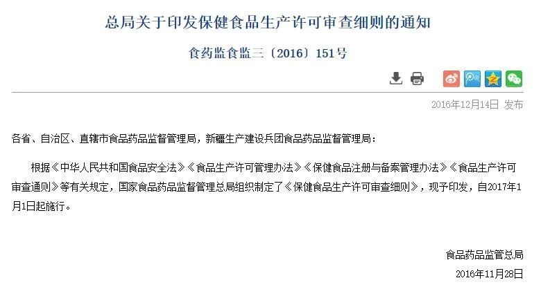 关键词:生产许可 特殊食品 食品监管
