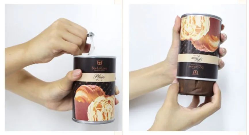 对于被装入罐头中的面包,采用高阻隔长保包装。蓬松柔软的面包组织被小心置于有限的空间之内,开罐的瞬间,依然能感受到甘美醇厚的香气。