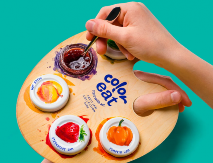 用调色板来组合包装果酱,产品充满了童趣