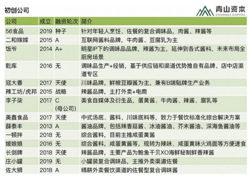 复合调味品的发展潜力吸引了大批创业公司进入这个蓝海市场,饭爷、李子柒等新兴品牌近年来相继获得融资。在资本的助力之下,复合调味品市场将涌现更多的新面孔。