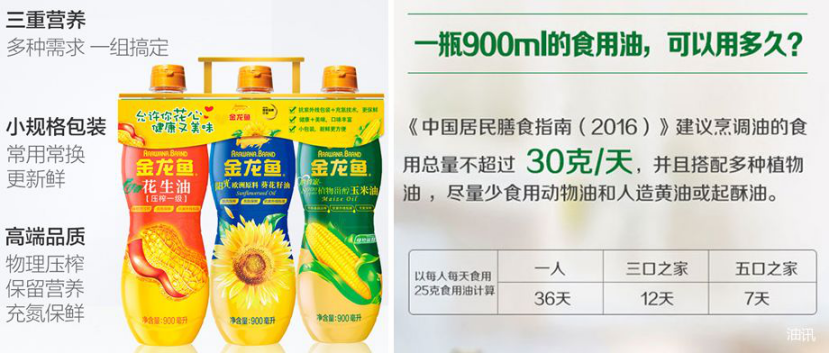 此外,大品牌们也纷纷推出了多种形态的小瓶装、组合装,700毫升、900毫升的瓶装油不再局限于赠品和样品,设计更加精致讨喜,“常换常鲜”成为用油新时尚。