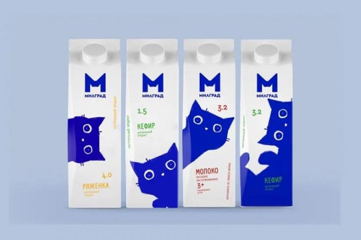 日式元素在包装设计上的流行,也与日本本国在包装设计上的历史与习惯有关。今年,由FBIF食品饮料创新论坛发起的全球食品包装设计盛典就将“最具商业价值奖”颁给了俄罗斯的Milgrad牛奶。蓝色作为明显的视觉线索,叠加了意想不到的猫,这让它在线下陈列时非常醒目,评语里说,“强大的货架冲击力和身临其境的布局,邀请消费者与包装标签互动。”