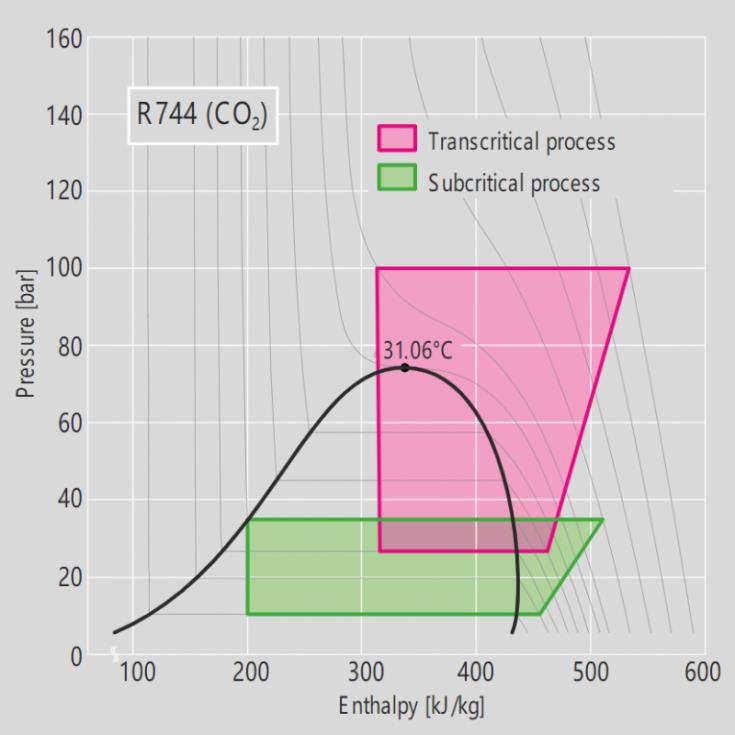 R744 (CO 2 )– 压力/焓图。图片来源:bitzer