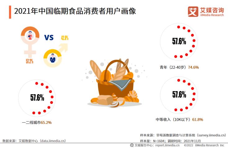 iiMedia Research(艾媒咨询)数据显示,中国临期食品消费者中超七成为青年群体,超六成为中等收入群体。中国临期食品消费者最常购买的前三大品类分别是包装零食类、面包糕点类、奶制品。超过五成的中国临期食品消费者每月产生复购,近八成消费者愿意向他人推荐。