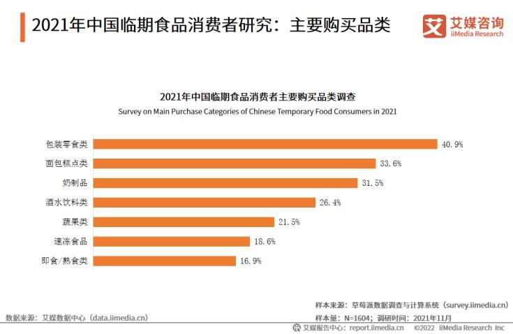 数据显示,在消费者购买的临期食品中,包装零食类购买的最多(40.9%),其次是面包糕点类(33.6%)和奶制品(31.5%)。艾媒咨询分析师认为,临期食品品类多元,涵盖日常休闲零食、刚需食品等,市场前景较为广阔。