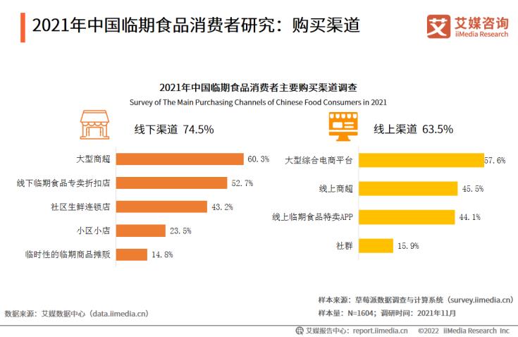 数据显示,中国网络零售额规模持续扩大,2021年达130884亿元,占社会消费品零售总额近三成。艾媒咨询分析师认为,线下店铺受到疫情冲击,线上消费已经成为大部分消费者的选择,线上零售市场持续扩大,成为临期食品主流销售渠道,为临期食品线上市场消费提供良好的消费基础。