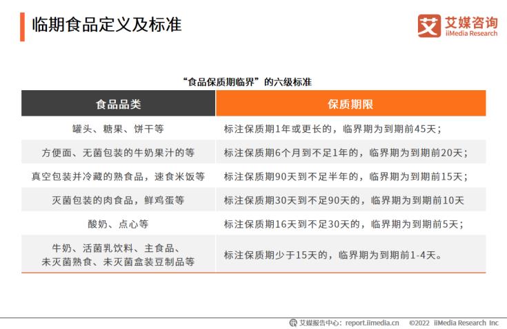 临期食品是即将达到保质期的食品,但仍在保质期内的食品,属于安全食品范围。2012 年,原国家工商总局发文明确要求,食品经营者要对即将过期的食品向消费者作出醒目提示,并单独出售,如超市的“临期食品专柜”。北京市工商局随之向外界公布了“食品保质期临界”的六级标准。