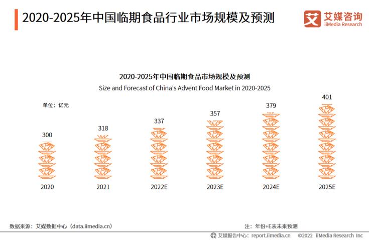 iiMedia Research(艾媒咨询)数据显示,2021年临期食品行业加速发展,市场规模达318亿元。2021年临期食品行业开始受到资本、用户关注,多个品牌获得融资,预计2025年中国临期食品市场规模达401亿元。临期食品从最初超市、便利店售卖方式延伸出新的业态,如线下专营临期食品品牌、专营临期食品垂直电商平台、线上线下结合的临期食品品牌,为临期食品行业增长带来可能。