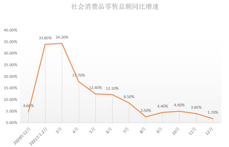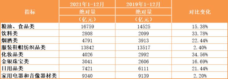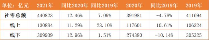 据国家统计局数据,2021年全国社会消费品零售总额440823亿元,比上年增长12.5%,两年平均增速为3.9%。