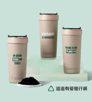 2021年全球地球日,星巴克推出新品“渣渣杯”包装,该包装是通过自主研发,回收咖啡渣进行脱水和烘干处理,将咖啡渣代替部分PP塑料粒子制作而成(材料中咖啡渣含量超过30%)。不同于纯PP塑料的光滑手感,它有着细微纹路,带自然淡棕色,表面有微微的起伏。拿到手的时候,甚至能闻到淡淡的咖啡香气。