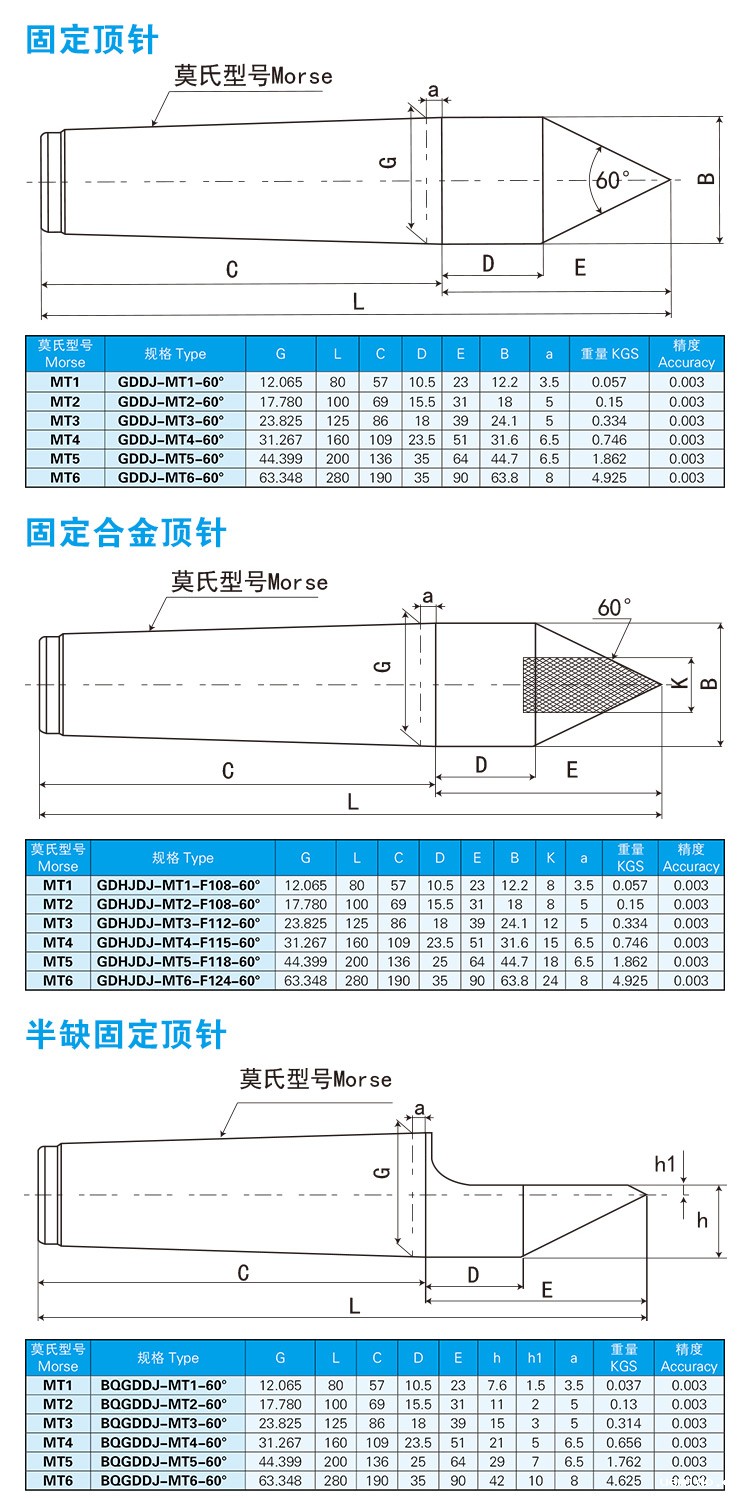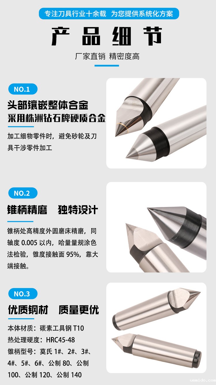 (1)固定顶尖:刚性结构,适用于低速、重载加工,如铸铁或硬质合金材质。