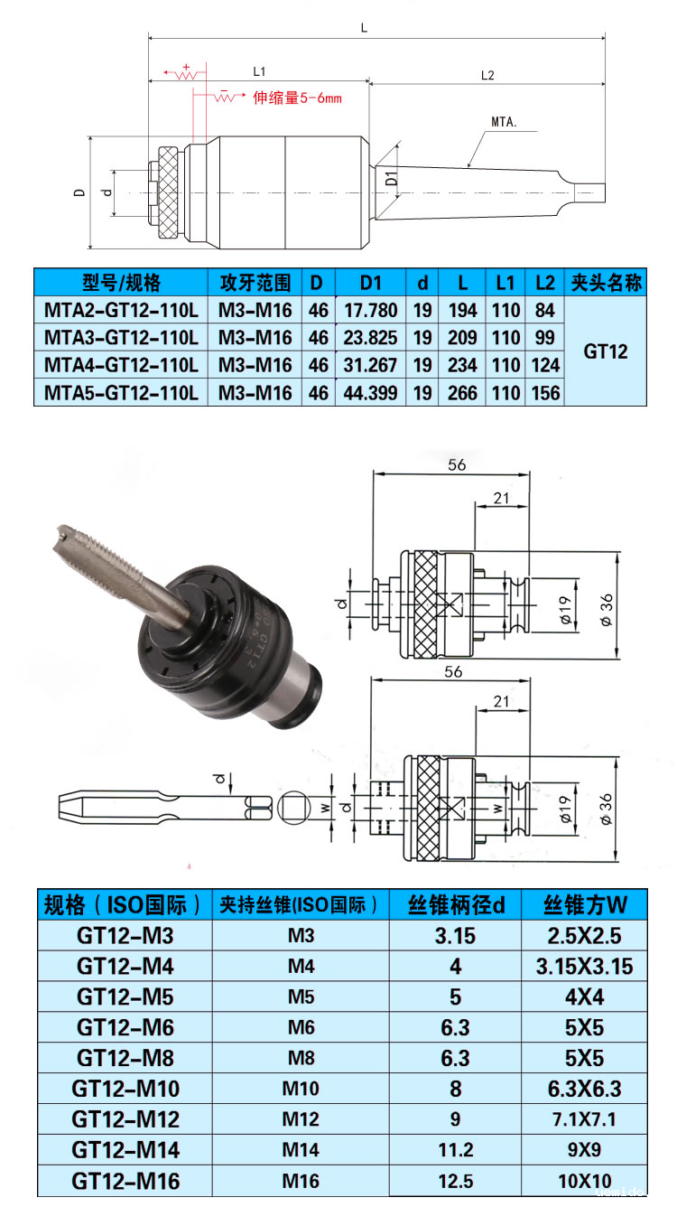 攻丝范围:GT12:M3-M16/GT24:M5-M30