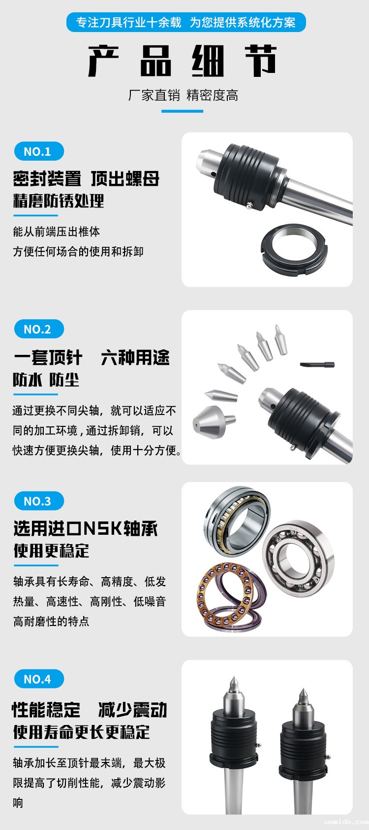轴承:5套进口NSK轴承,自带顶出螺母