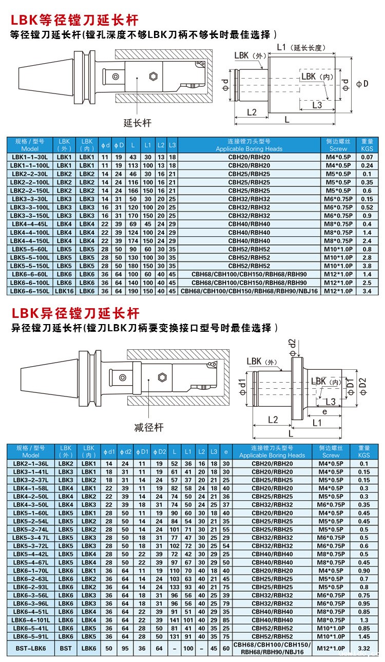 特点:等径延长杆适用于LBK、DCK、CK等系列的等径基础刀柄延长之用,异径延长杆适于深孔加大刀柄可变小径装镗头起到抗震作用。